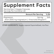 - Sports Research's magnesium L-Threonate capsules are easy to swallow and the most convenient way to add this essential mineral to your daily diet.