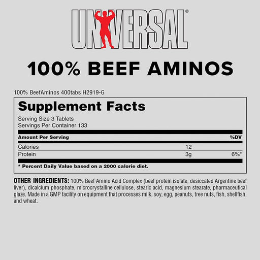 View full detailsUniversal Nutrition 100% Beef Aminos,3g of Pure Beef Protein Isolate