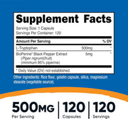 Nutricost L-Tryptophan 500mg, 120 Capsules - with BioPerine, Gluten Free, Non-GMO