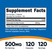 Nutricost Ox Bile Capsules 500mg Per Serving, 120 Capsules - Gluten Free & Non-GMO