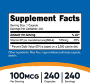Nutricost Vitamin K2 (MK4) 240 Capsules - Gluten Free and Non-GMO