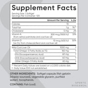 Sports Research Omega-3 Wild Alaskan Cod Liver Oil 1000mg, 120 softgels - Burpless, Bovine Free, Non-GMO, & MSC Certified Sustainable