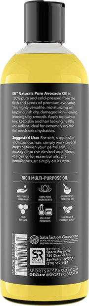 Sports Research Pure Avocado Multi-Purpose Oil 16 Fl oz for Hair, Skin