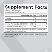 Sports Research Evening Primrose Oil 1300 mg 120 Liquid Softgels