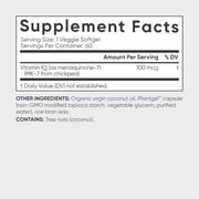 - Organic Coconut Oil | Vitamin K2 is fat-soluble and difficult for the body to absorb if not supplemented with fat. To help improve absorption, we mix Vtiamin K2 with coconut oil.