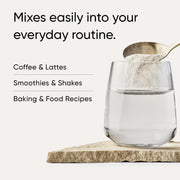 - Enjoy effortless usage by incorporating one scoop of our drink mix into your daily routine. Whether as a smoothie powder or a soluble protein creamer for coffee, our collagen peptides dietary supplement dissolves easily in water, and each serving contains just 40 calories.