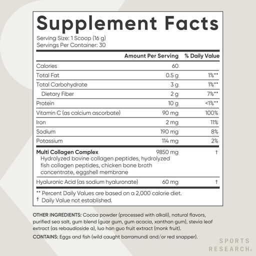 View full detailsSports Research Multi Collagen Protein Powder (Type I, II, III, V, X) with Hyaluronic Acid + Vitamin C, 30 serving