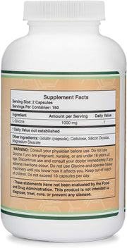 Whopping 300-Capsule Bottle: Each bottle includes 300 capsules of pure Glycine, providing 150 servings of 1,000mg per serving for long-lasting support.