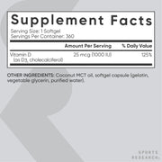 Sports Research Vitamin D3 1000iu, 360 softgels - Vitamin D for Strong Bones & Immune Health - Supports Calcium Absorption