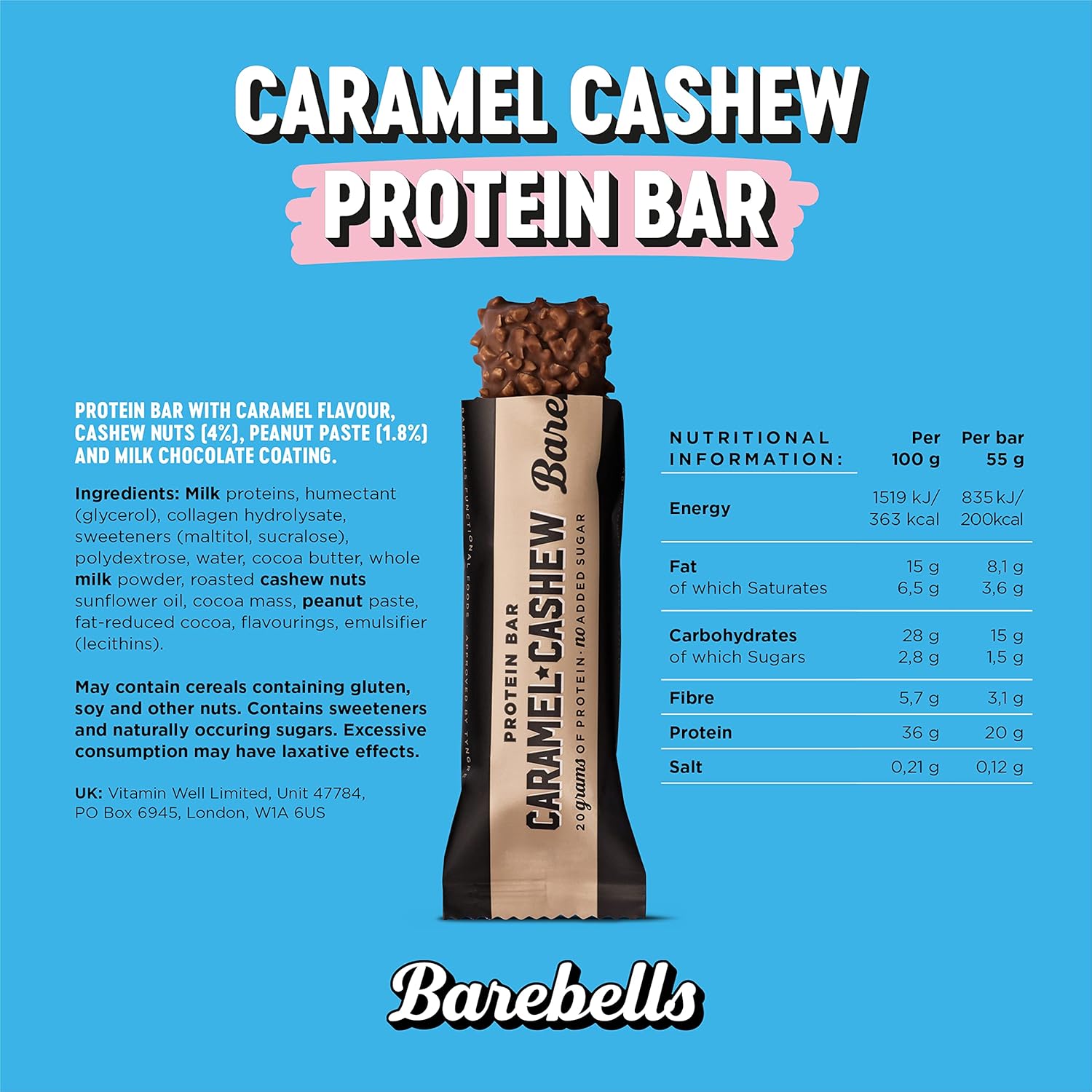 High Protein: 20g of protein per bar.