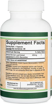 Double Wood Supplements Bacopa Extract 450mg - 90 Capsules