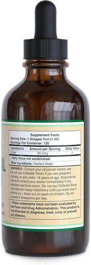 FOUR-MONTH SUPPLY: Contains 120 servings of 20 PPM colloidal silver for long-lasting value.