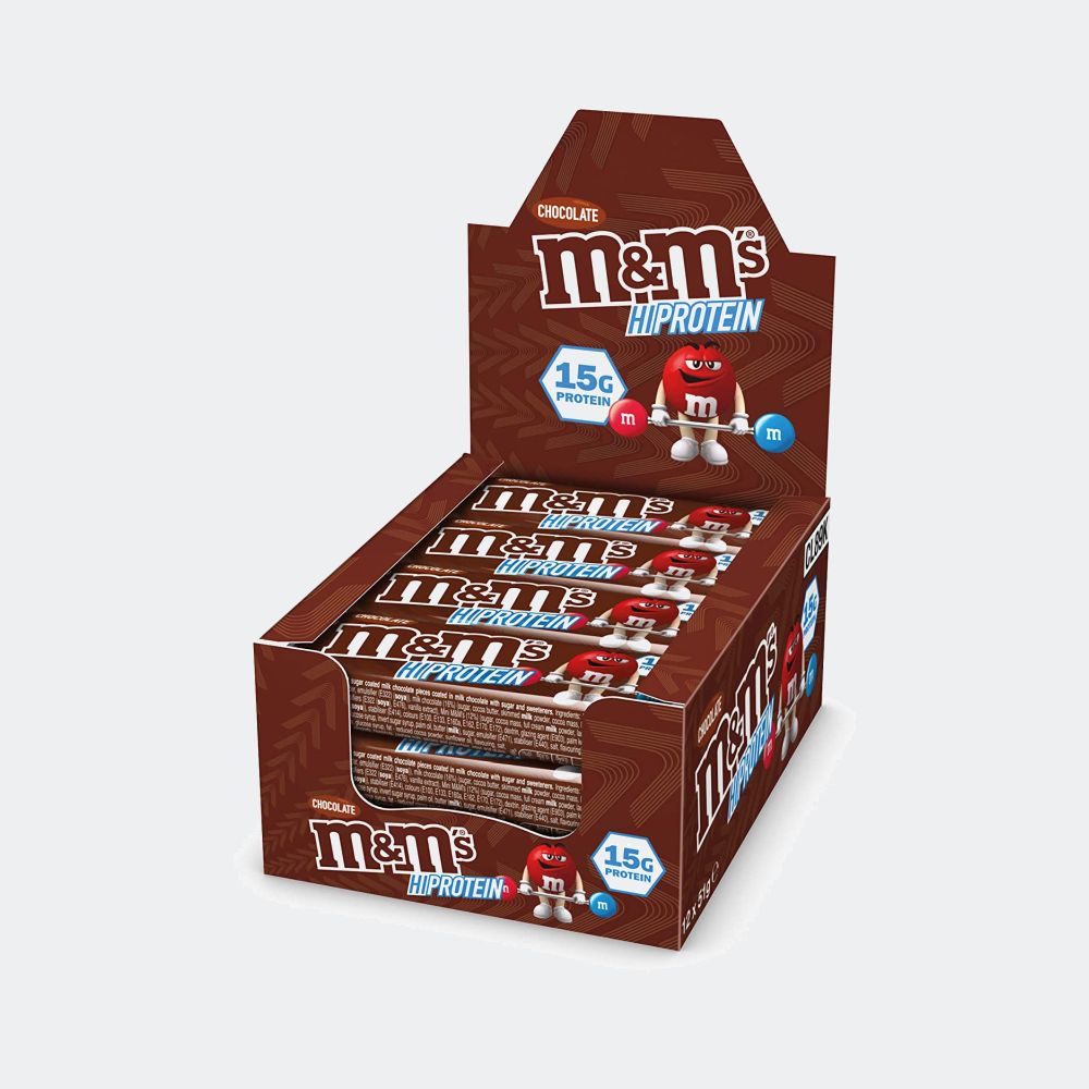 - Our brand new M&M's Hi Protein Peanut Bar contains M&M's, peanuts, real milk chocolate and a delicious caramel coating, all combined with 15g of protein.