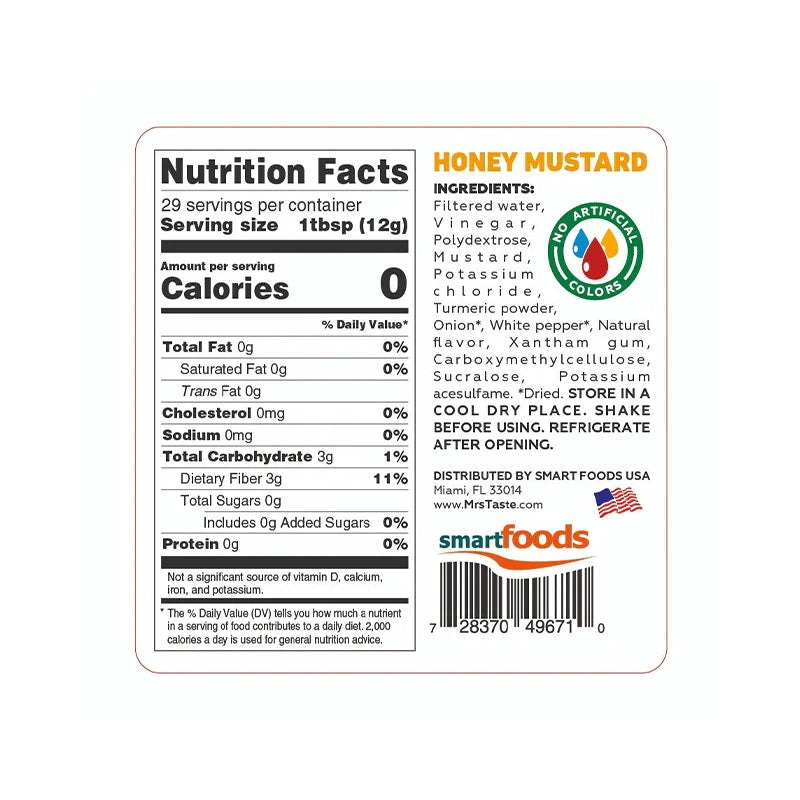 - Preserves the distinctive flavor of mustard, adding flavor to your dishes with NO SODIUM, NO SUGAR AND NO CALORIES.