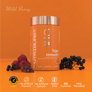 Nutriburst Triple Immunity Vegan Sugar Free Supplement, Berry, 60 gummies