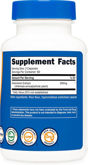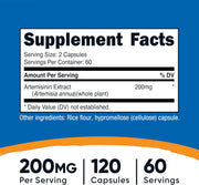 Nutricost Artemisinin 200mg, 120 Vegetarian Capsules - Non-GMO, Gluten Free, 60 Servings