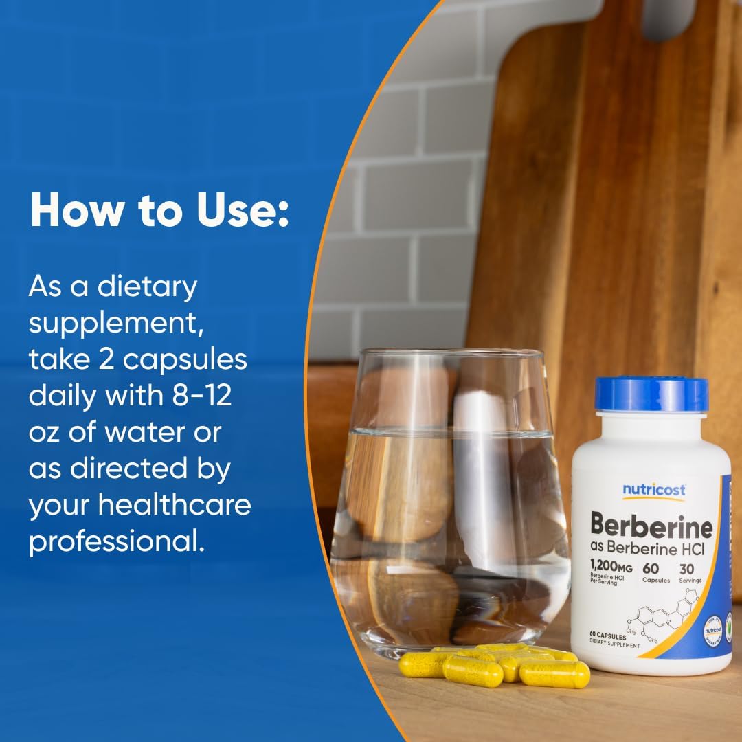 High-Potency Dose: Each capsule contains 1200mg of Berberine HCl for maximum support.