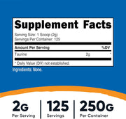 Nutricost Taurine Powder 250g - 125 Servings, 2000mg per serving