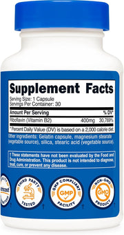Nutricost Vitamin B2 (Riboflavin) 400mg, 30 Capsules - Gluten Free, Non-GMO