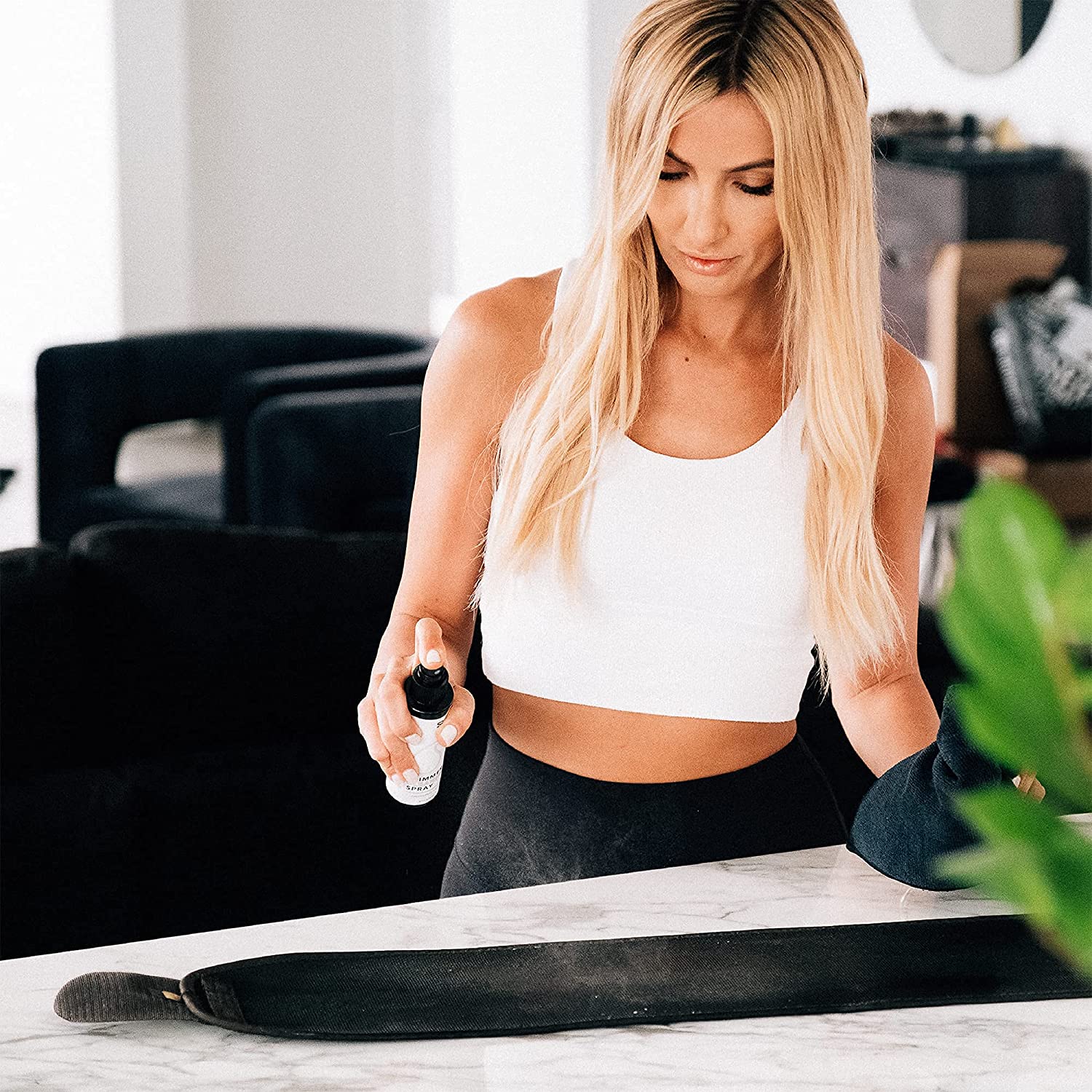 - Use Sweet Sweat Cleansing Spray on your waistband, yoga mat, or gym equipment to deodorize and refresh your post-workout experience